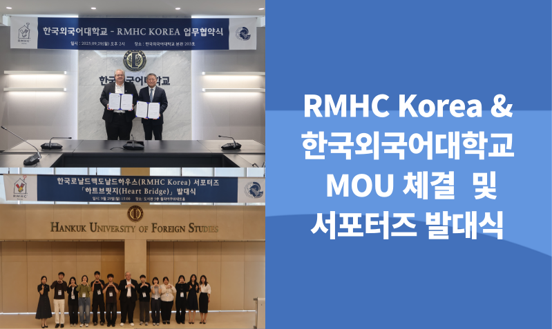 RMHC Korea와 한국외국어대학교가 상호 발전과 전문 인력 양성을 위한 MOU를 체결했습니다.